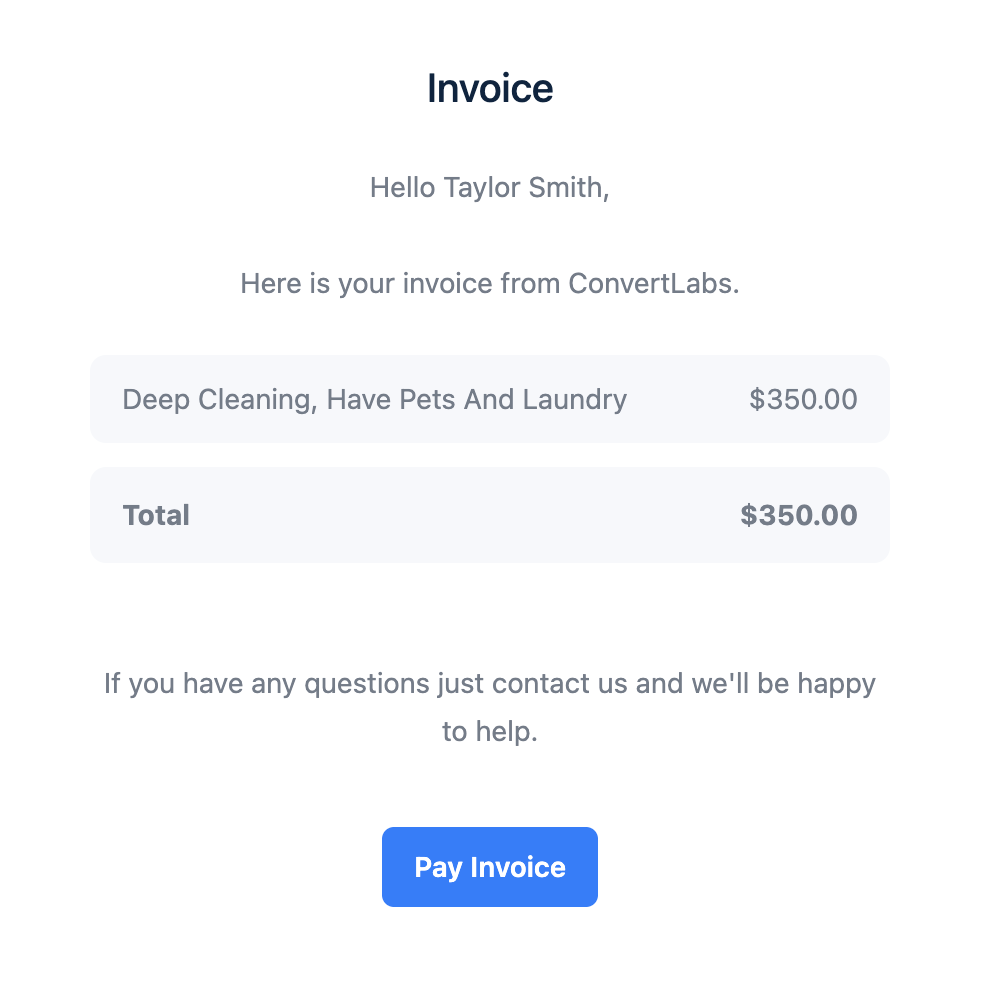 If you select “Send invoice via email”, the customer will receive an email notification containing: