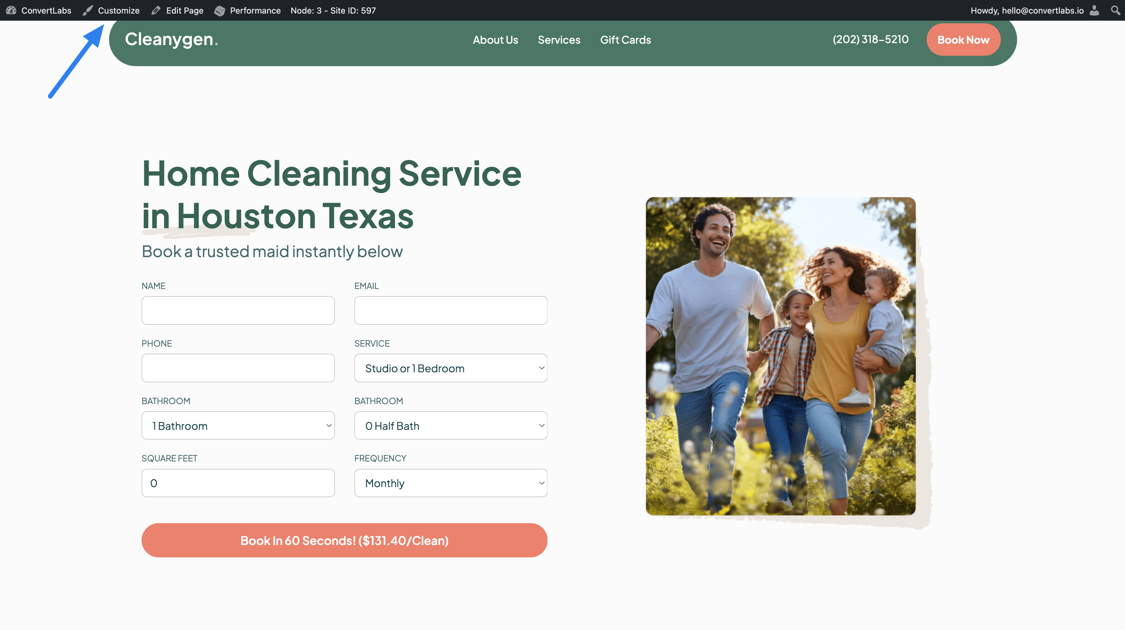 - You will see your live website with the editor bar at the top.