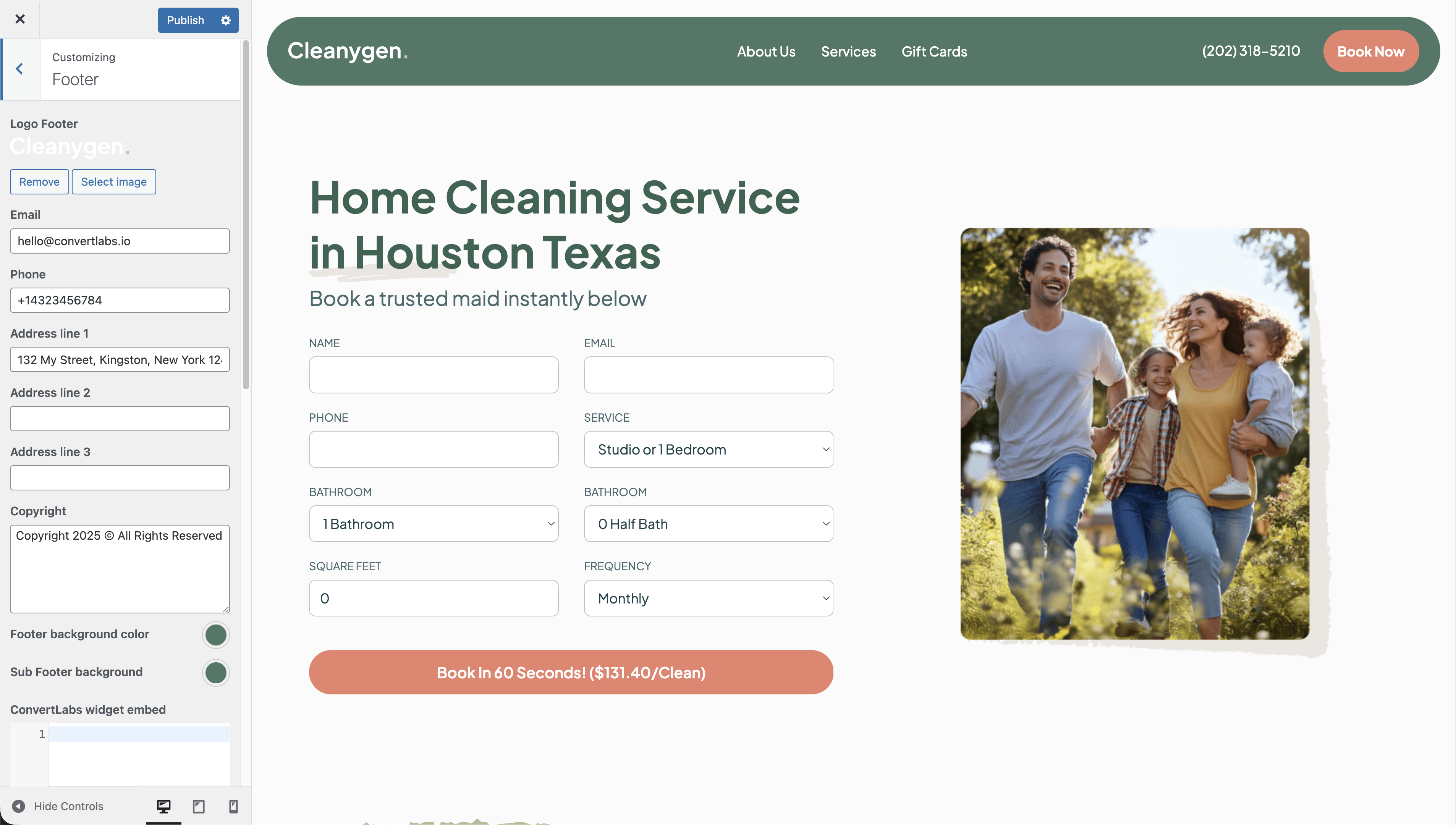 Footer changes are reflected across all pages of your website.