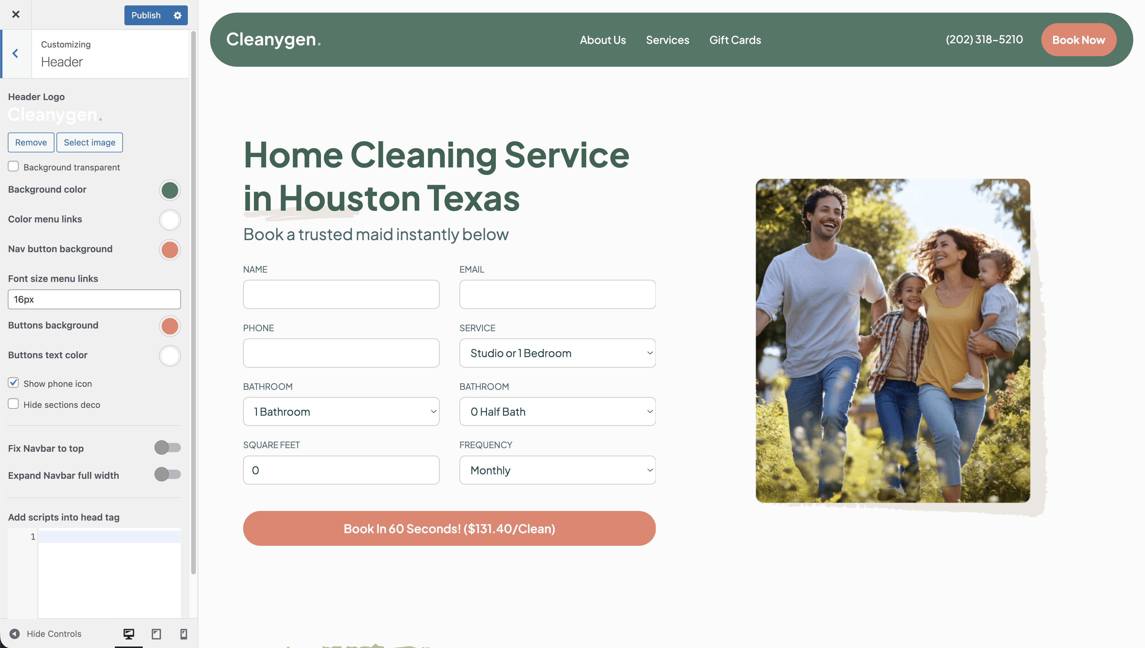 From here, you can update logos, colors, navigation styles, contact details, social links, and embedded scripts. Changes made in this section apply across the entire website.