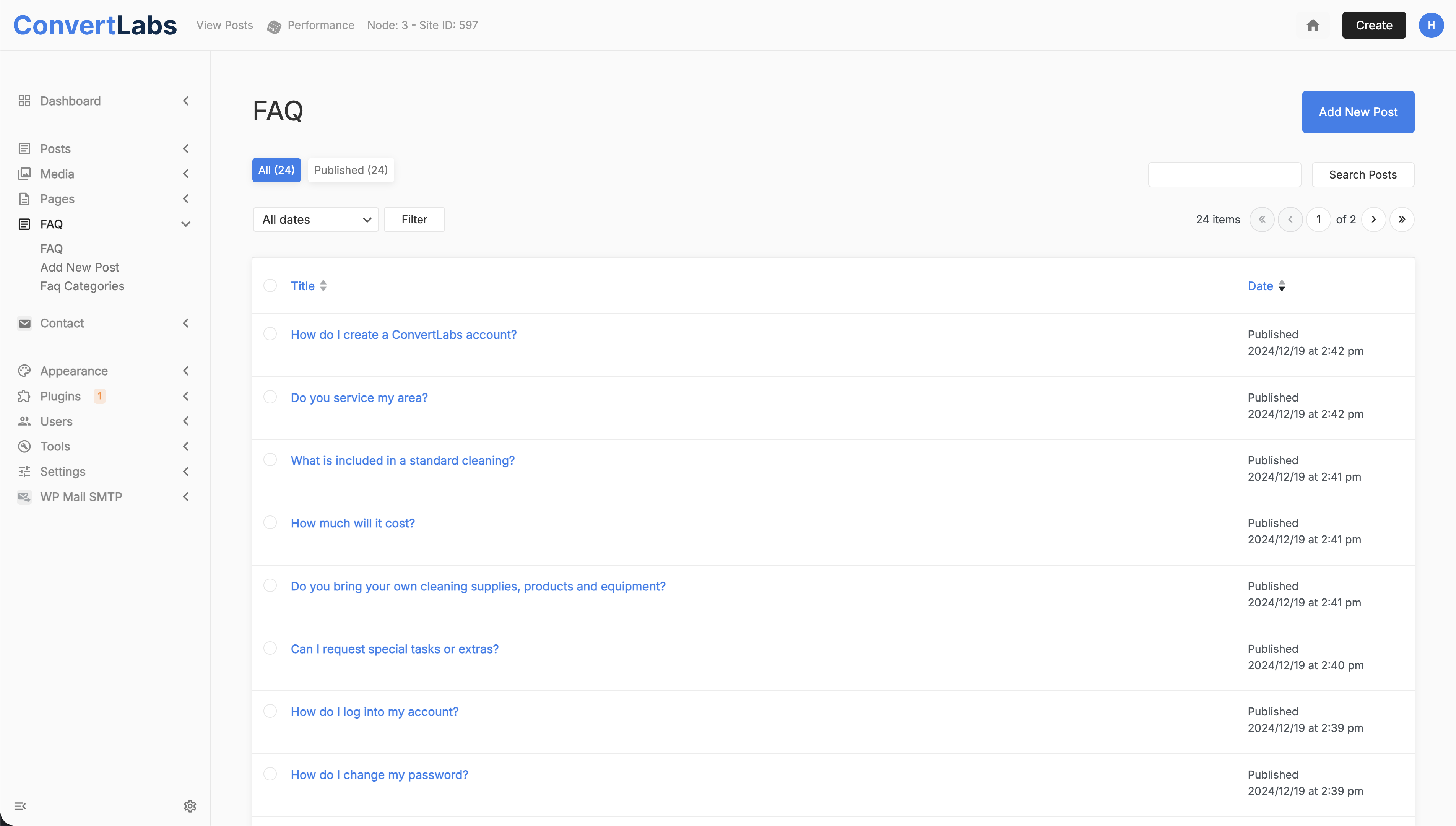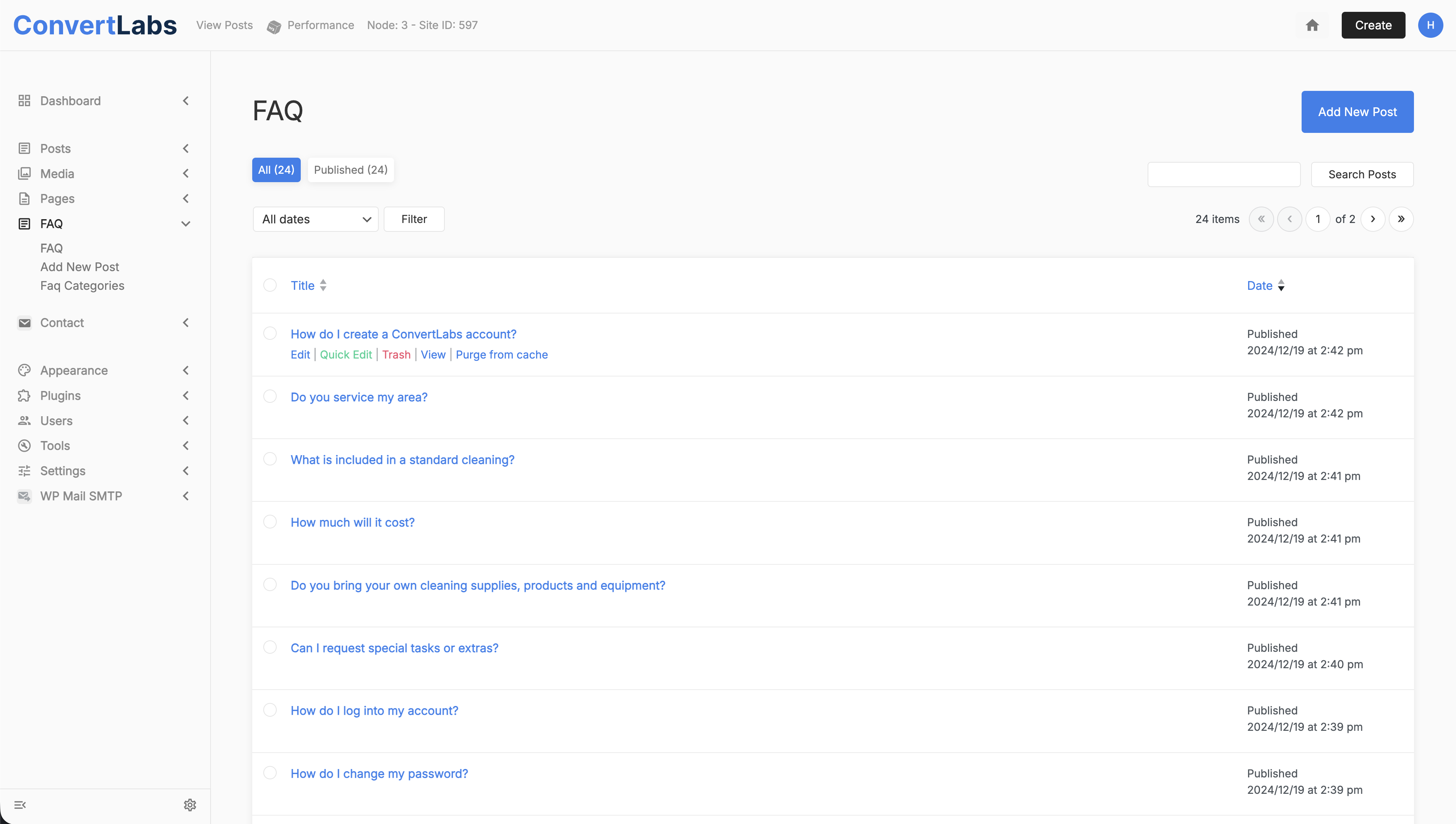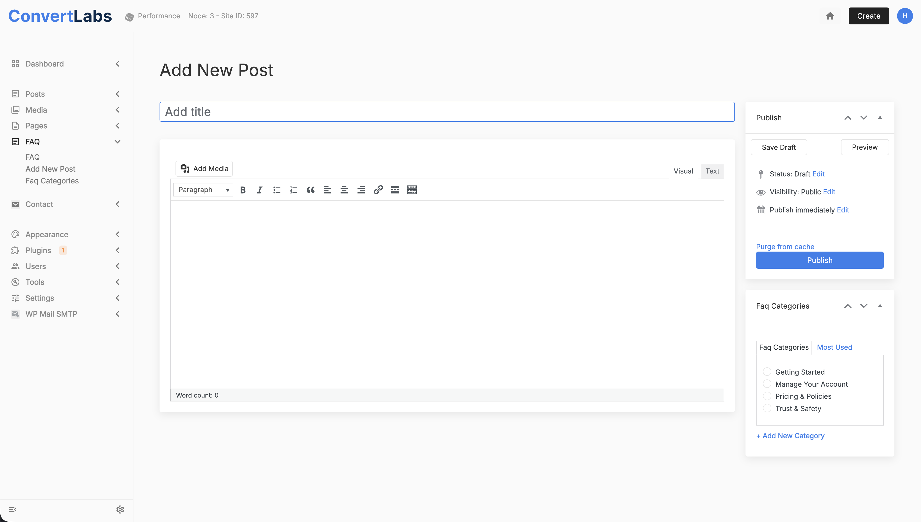- In the FAQ view, click Add New Post.