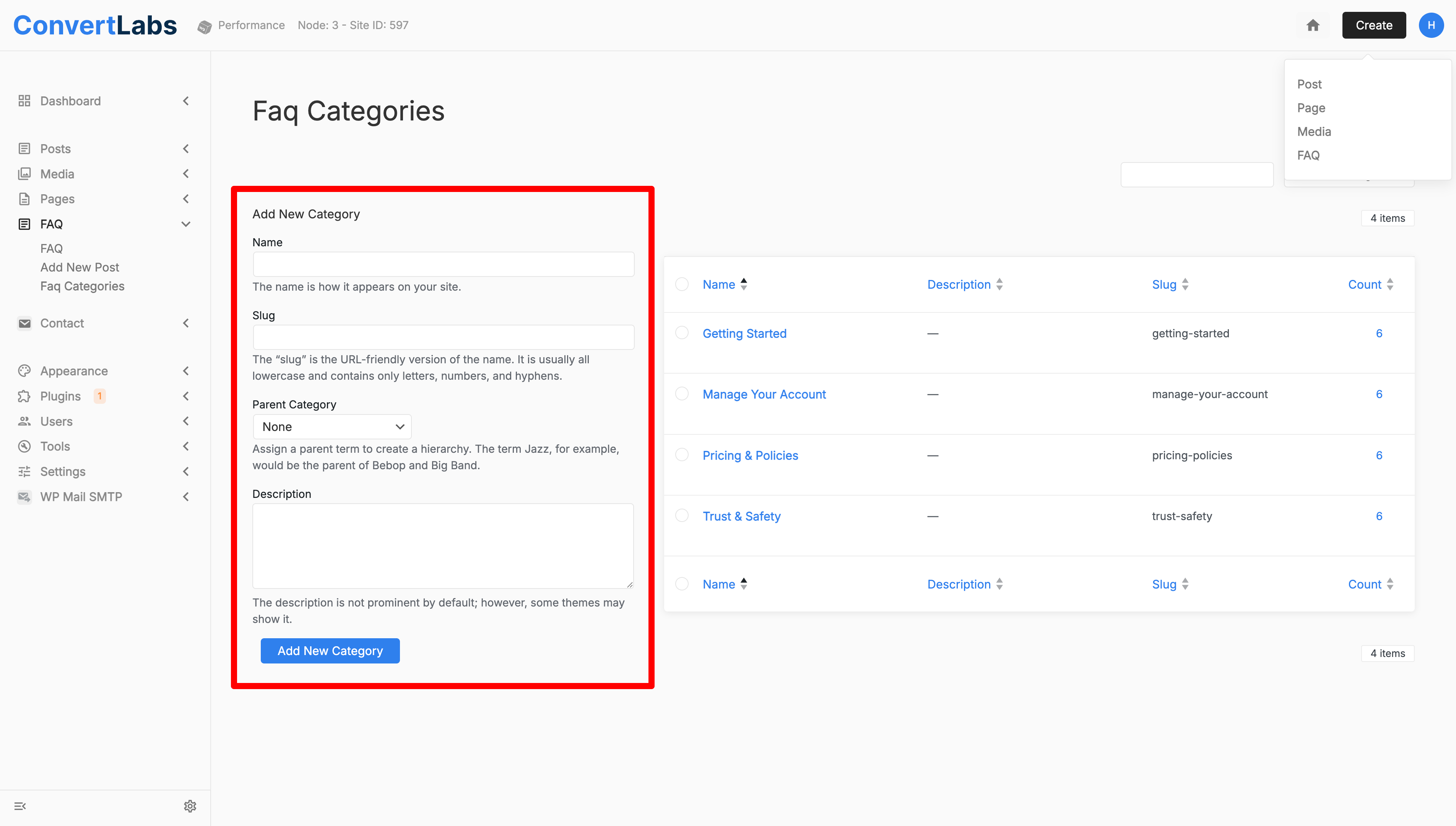 - Go to Faq Categories.