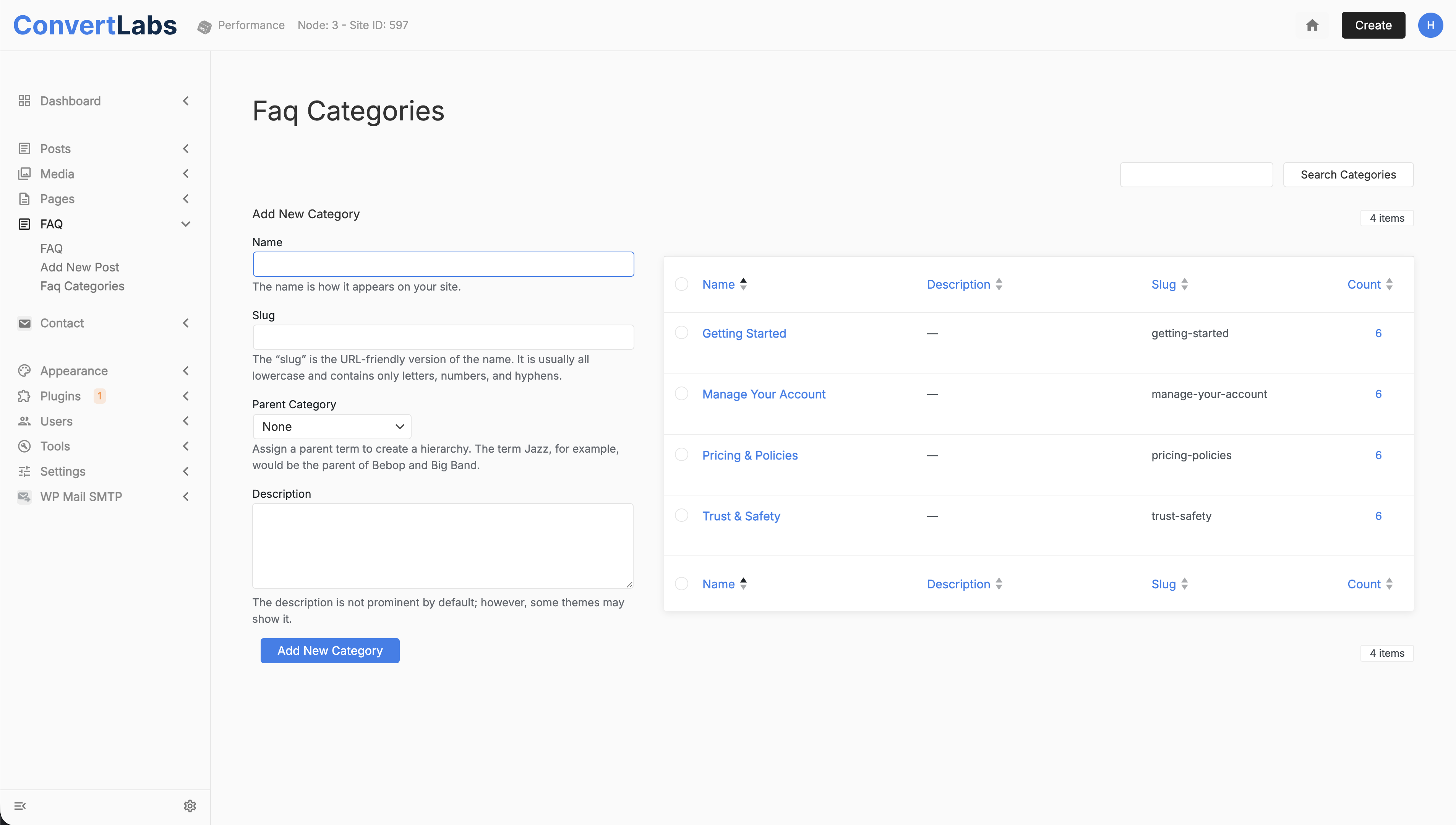 Managing FAQ Categories